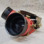 -Brass-plated metal wings are mounted to the sides of the eye cups with brass knurled nuts and gears.