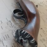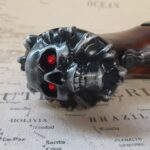 Butt of the gun has a brass skull and crossbones on it with Ruby Red jeweled eyes.
